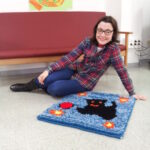 Mª José: “La alfombra es bonita. Aprendí en el colegio Príncipe Felipe de Pontevedra. En ADCOR he hecho una de un gato y estoy terminando otra de puzzle”.